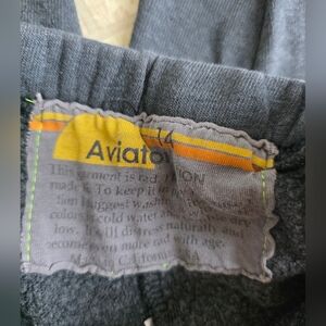 This Aviator Nation Kids Smiley Face Sweatpants Size 14 charcoal Grey color used with hole damage to the knees and back