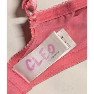 This Lucy 30DD unlined bra from Cleo by Panache offers a feminine and delicate design in a soft pink color. Featuring wired cups for added support, the bra is crafted with lace detailing and a small bow accent at the center for an elegant finish. It is in very good condition, showing minimal signs of wear. Perfect for everyday comfort with a stylish touch. Made in the United Kingdom.