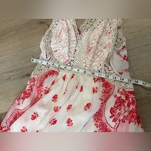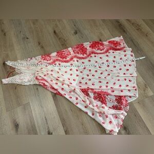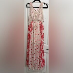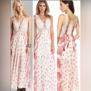 Free People Victorian Love Magnolia Cream Red Floral Crochet Maxi Dress.