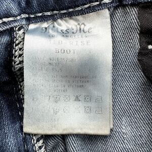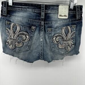 Miss Me Denim Shorts Cutoff Mid Rise Fleur de Lis Embroidered Rhinestone Blue 28