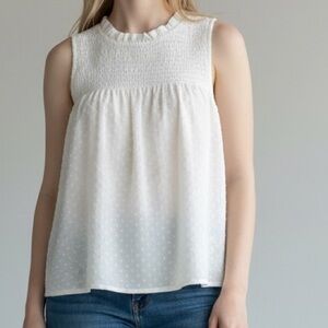 J.Crew NWT Smocked Clip-Dot Tank Top Large Ivory Sleeveless Blouse