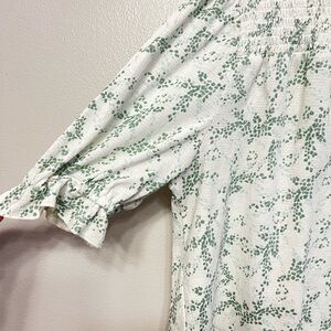 MELLODAY Green and White Leaf Floral Blouse Ruffle Smocked Size Large