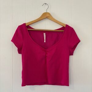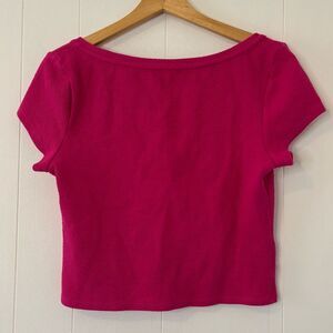 By Anthropologie Scoop Neck Baby Tee Crop Top Short Sleeve Hot Pink Medium