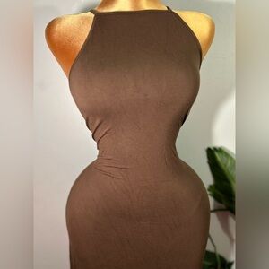 Elegant chocolate strapless dress. Flattering fit. Ideal for any occasion.