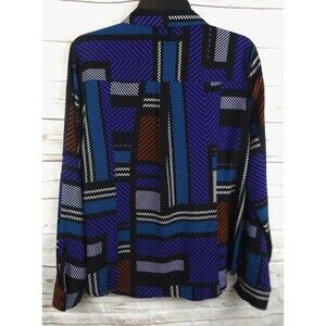 New Dana Buchman Blouse Top Large Multi Color Geo Print
