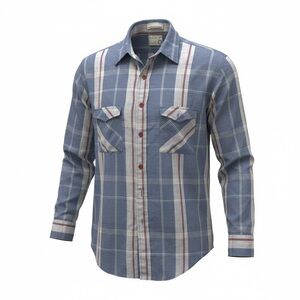 Casual Levi's shirt with blue and white plaid pattern. Features button-down front and chest pockets. Ideal for everyday wear.