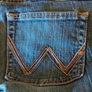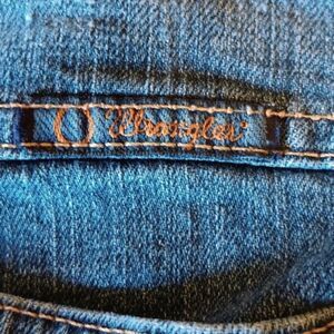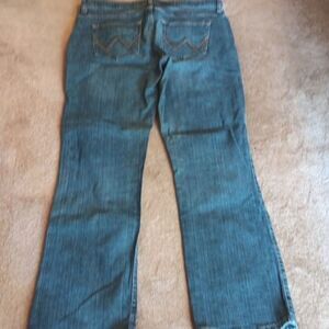 Straight leg jeans. Five pocket. "No Gap Waistband". Medium wash. Some stretch. Measures 35 at waist, 44 at hips, 10 inch rise, inseam 31.5. 18 inch leg opening. Comfortable and good looking.