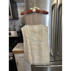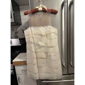 BCBG Prom Knee Length Dress Sz 8, Silk Organza Off White Shear Blush Pp17 L35