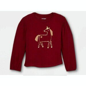 Cat & Jack™ Girl's Unicorn Cozy Long Sleeve T-Shirt Tops Burgundy XS