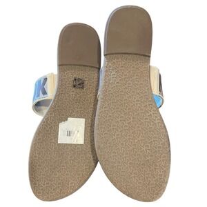 DKNY Logo Thong Sandals Womens Size 11 Nude Patent Slip On Flat Summer