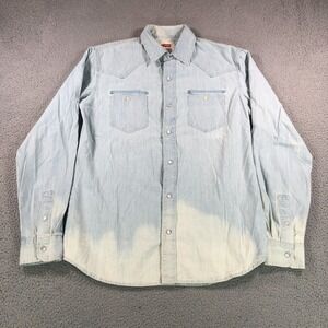 Levis Shirt Adult Medium Blue Denim Pearl Snap Western Rodeo Cowboy Heavy Cotton