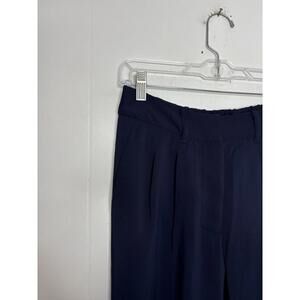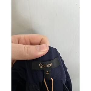 Quince Pants Womens 4 Stretch Crepe Wide Leg Pleated Navy Corpcore Career