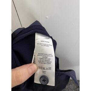 The Quince Women's 4 Stretch Crepe Wide Leg Pleated Navy Pants offer a timeless and classic style perfect for a career or casual occasion. Made with a comfortable stretch crepe fabric, these pants feature a wide-leg silhouette and pleated details. The navy blue color adds a preppy touch, while the high rise waist and 29-inch inseam provide a flattering fit. Machine washable and crafted with spandex material, these pants are both stylish and practical for all-day wear.