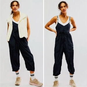 Free People Movement Down To Earth Onesie Jumpsuit in Black Size S NWOT