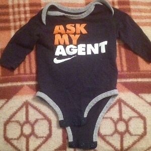 Classic white Nike tee with long sleeves. Features iconic logo. Ideal for casual wear.all are 0-6 the Nikes besides the one Jordan romper that's 0-3