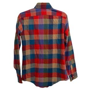Vintage NWT bold plaid design with red, blue, and tan hues. Ideal for casual wear. Deadstock.
