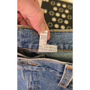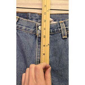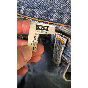 tags/keywords: vintage jeans, distressed, levis 550, high-waisted denim, straight leg jeans, retro style pants, cotton jeans, durable denim, classic levis, blue jeans, casual wear, women's denim, 90s fashion, timeless jeans, stained