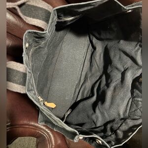 This bag is an authentic Hermès Fourre-Tout MM tote bag. It is a classic canvas tote known for its durability and minimalist design, featuring the signature striped webbing. Retail around $800 (in early 2000s)