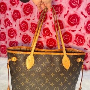 100% authentic pre owned Louis Vuitton Monogram Neverfull PM tote bag with natural cowhide leather trim in great condition super cute bag!