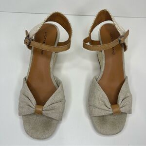 Lucky Brandโ Women's 8 Tan Gray Espadrille Wedge Sandal Feminine Bow Beach Vaca