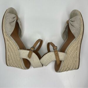 Lucky Brand Tan Gray Espadrille Wedge Sandal Feminine Bow Beach Vaca