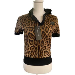 Dolce & Gabbana Short Sleeve Polo Top in Leopard Size 36 (US 4)