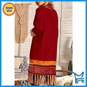Long Open Front Cardigan Sweater, Oversized Fit, Acrylic Knit, Tassel Fringe