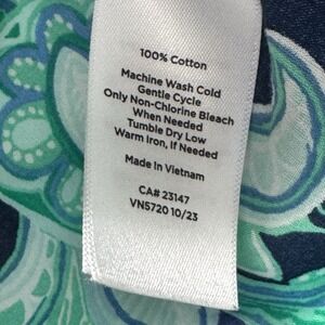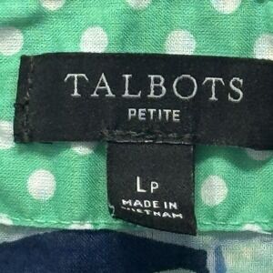 Talbots Womens Petite Large Abstract Paisley Blue Green Long Sleeve Work Casual