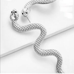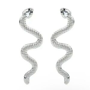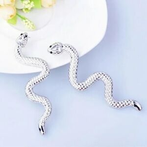 SNAKE Silver Tone Dangle Long Earrings 4" Serpent Black Eyes Fashion Jew…