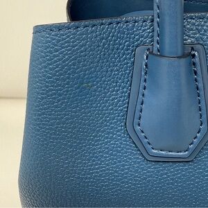 Michael Kors Women Mercer Gallery Medium Leather Tote Blue EUC structured satchel tote in dark chambray blue pebbled leather. Classic MK silhouette perfect for work, daily use, or polished casual outfits.