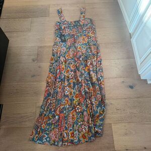 $69 Vince Camuto Floral Square-Neck Smocked-Back Maxi Dress Size large m9