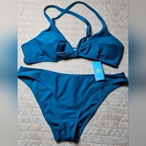 69.🆕XL Cupshe V Neck Tie Knot Top and Low Waist Bikini Bottom Size XL NWT