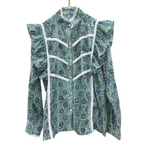 SLV SUR LA VAGUE Floral With Lace Insets Charlene Blouse One Size