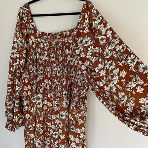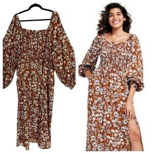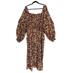 nwt La Ligne Liberty Floral Smocked Bodice Maxi Dress Brown/White Size 4XL