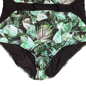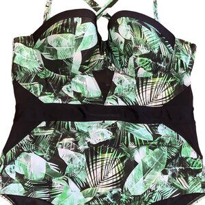Torrid Vixen 1pc Swimsuit Women Size 22/24 Green Palm Black Mesh Insets NWT