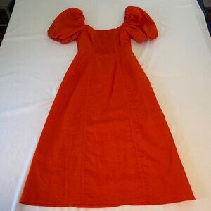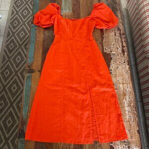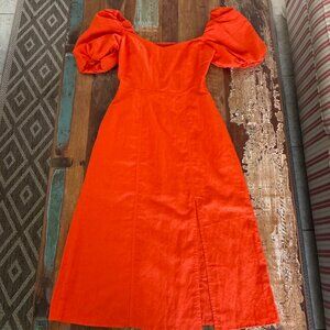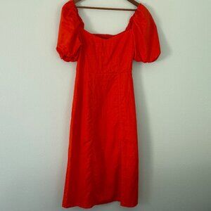 NWOT Banana Republic Orange Linen Blend Puffy Sleeve Side Slit Dress Size 2