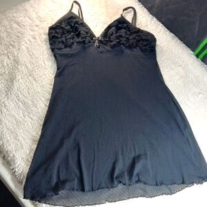 Gilligan And Omalley Black Sheer Lined Slip Dress With A Back Tie And Lace Large. Adjustable Straps.
