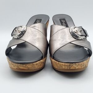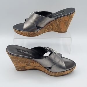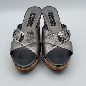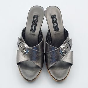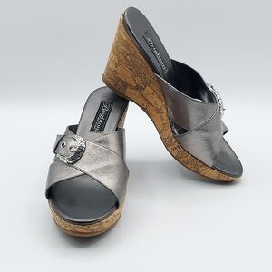 Brighton Summer Made In Italy Platfrom Cork Wedge Heel Sandals Pewter Women's 7