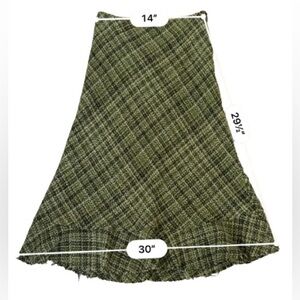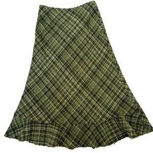 Hobbs of London Green Tweed Plaid Tulip Midi Skirt. Size 10.