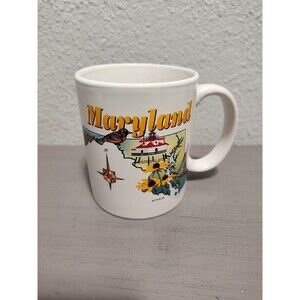 Vintage Maryland Souvenir Coffee Mug State Map Landmarks Travel Gift Cup USA