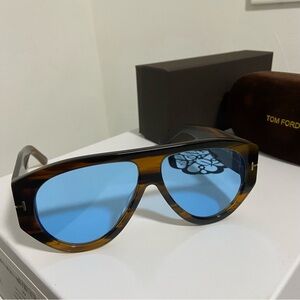 Tom Ford Sunglasses with Blue Lenses and Brown Frame