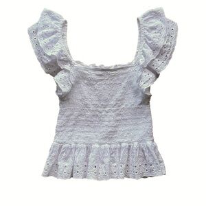 House of Harlow 1960 White Smocked Eyelet Peplum Top - Size Small - Revolve