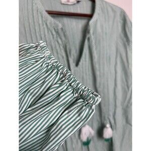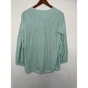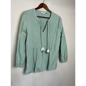 Vineyard Vines womens medium green white striped long sleeve top blouse