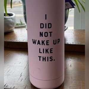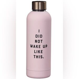 Featuring a clever reversible design with "I Woke Up Like This" on one side and "I Did Not Wake Up Like This" on the other, this fun stainless steel water bottle is a charmer with its rose-pink background and shiny rose-gold lid. Double-wall insulated to keep beverages cold or hot as needed, this lovely bottle is perfect for H20, iced tea, hot coffee and more.