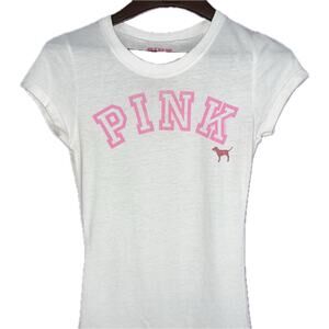 White Pink Victoria’s Secret Classic Y2K Short Sleeve Baby Tee Size XS