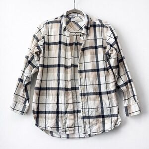 LOFT Petites Plaid Button Down Shirt Size SP Neutral Beige Navy 26"