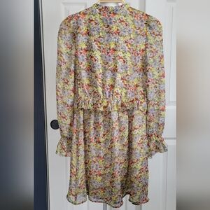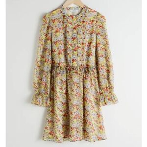Paris Atelier & Other Stories cottagecore boho flowy romantic ruffled floral minidress. Inspired by a longer version worn by Kate Middleton. Airy silhouette, perfect for spring/summer, with full slip lining, balloon sleeves with gathered cuffs, and pintuck bodice with buttons. Pre-owned in good condition. Women's size 0. See photos for approximate measurements.