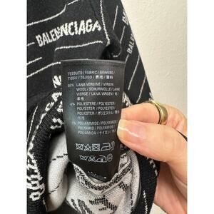NWT Balenciaga Logo Intarsia Wool-Blend Sweater Black Men's XL