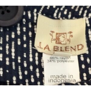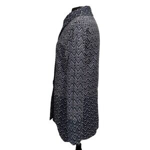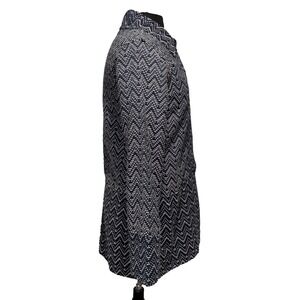 New with tags! This gorgeous LA BLEND chevron long jacket features a stunning navy and white geometric dotted chevron pattern that creates beautiful visual movement. The tunic-length silhouette and relaxed A-line shape make this a versatile layering piece perfect for transitional seasons.