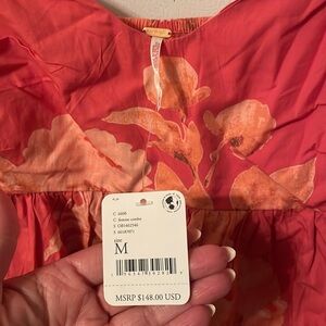 Free People NWT Medium 100% Cotton Coral Floral Dress
